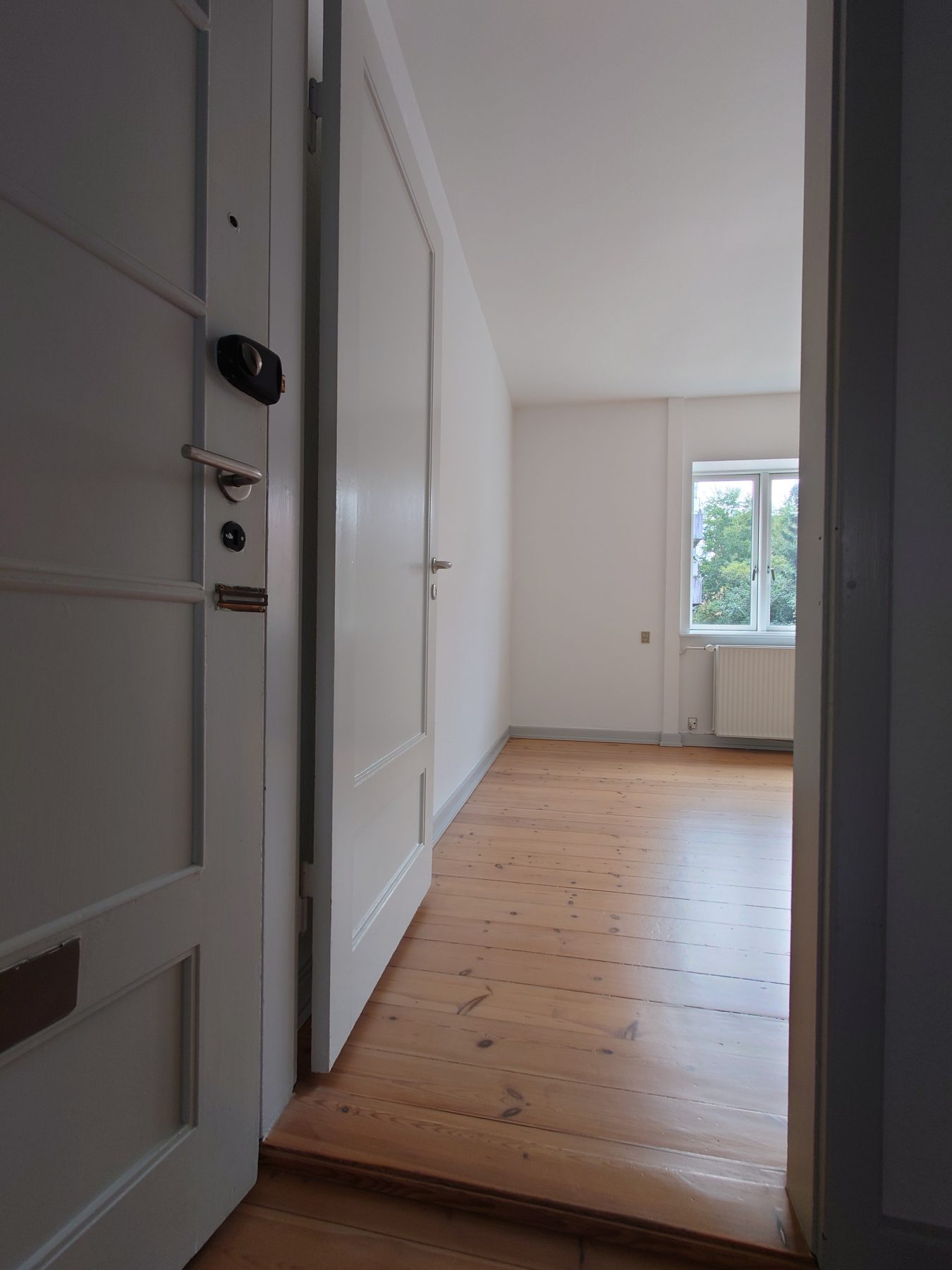 Lejligheden er malet i lyse indbydende farver og har flotte plankegulv.
