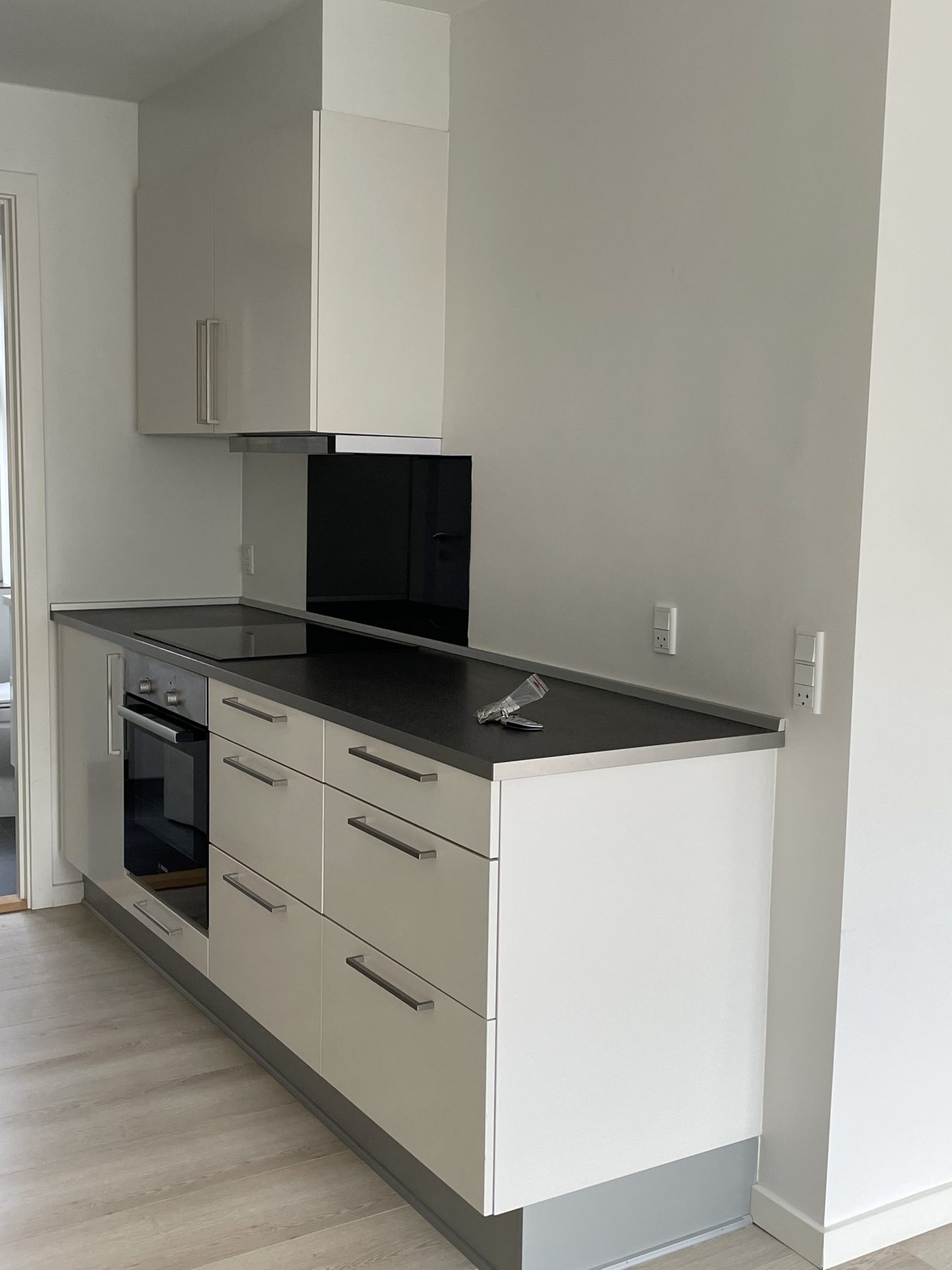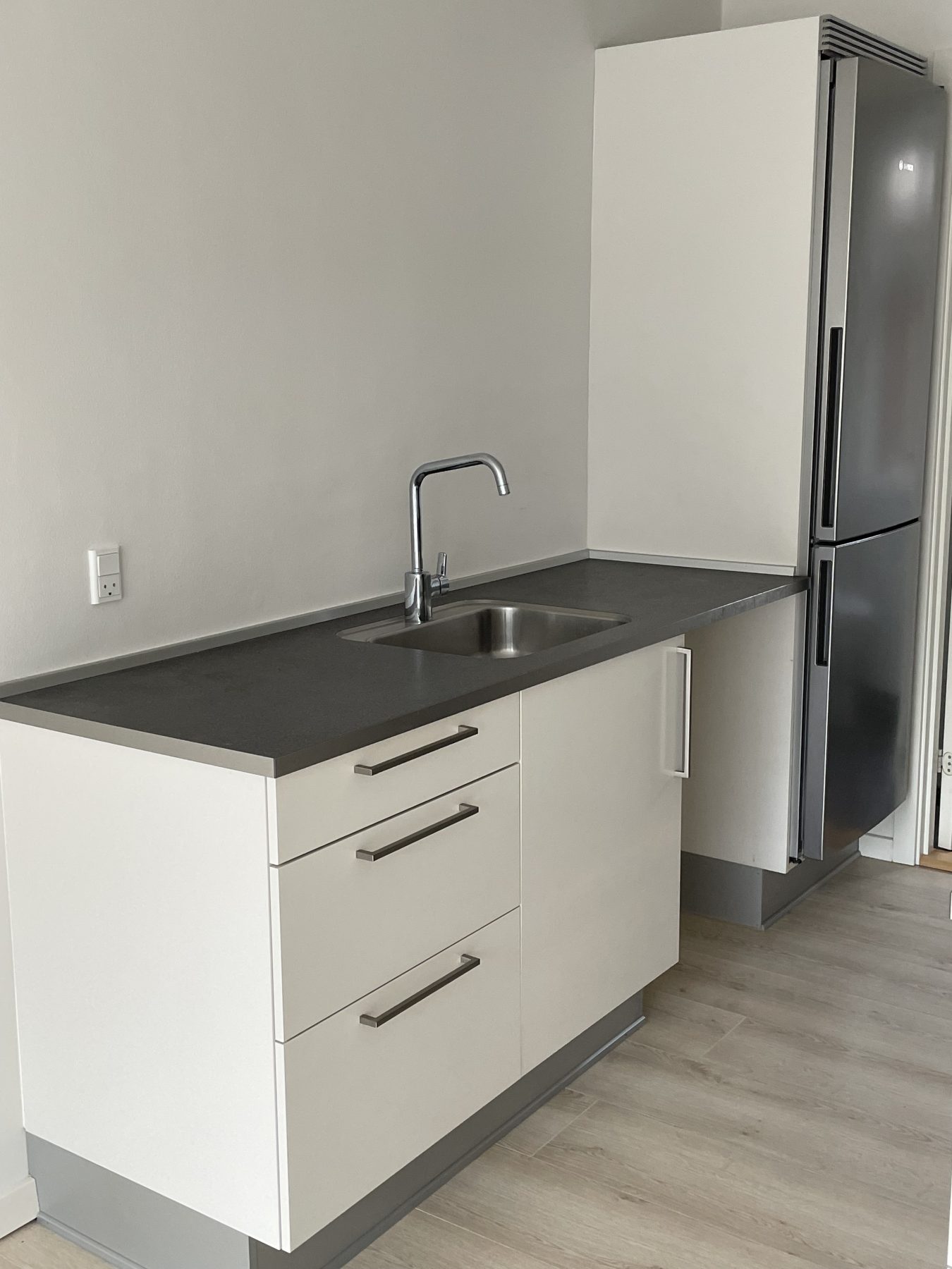 Lejligheden har et flot lyst køkken, med mulighed for at installere opvaskemaskine.