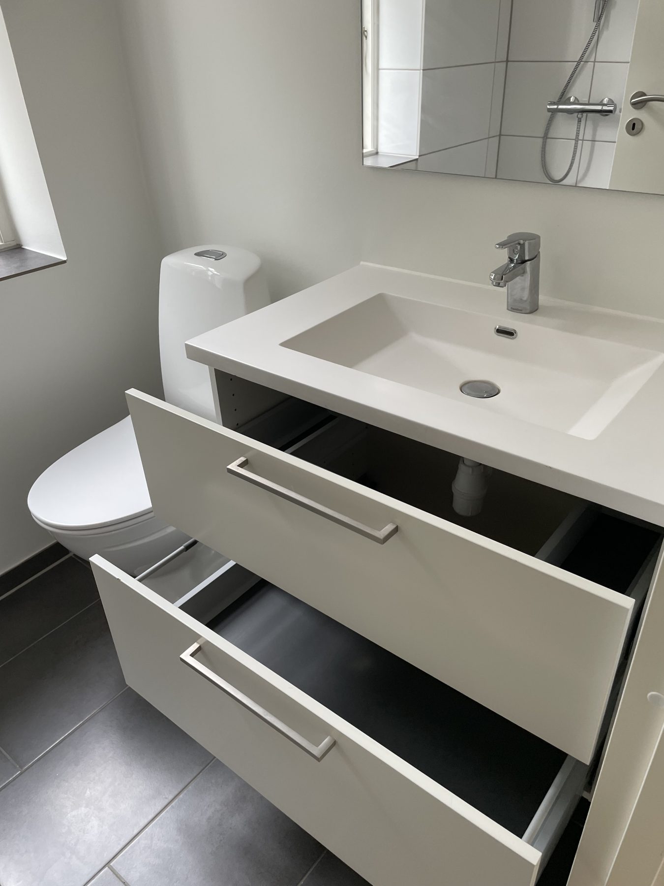 Der er mulighed for at etablere vaskesøjle i det flotte badeværelse